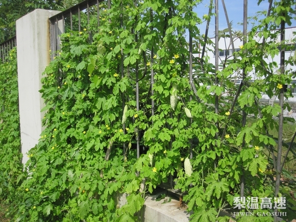近日,梨温高速弋阳站菜地里一片丰收的景象,辣椒、豆角挂满枝头,空心菜地长势良好。一些由苦瓜、南瓜、丝瓜挂满站区的部分围墙,还已成了该站一道亮丽的风景线。