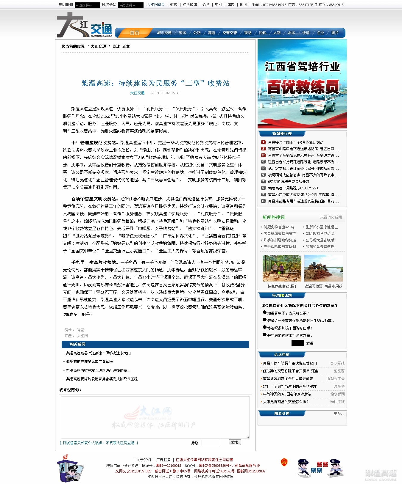 正文: 梨温高速立足实现高速“快捷服务”、“礼仪服务”、“便民服务”,引入高铁、航空式“营销服务”理念,在全线245公里13个收费站大力营建“比、学、赶、超”岗位练兵,推进各具特色的文明创建活动。服务,还是服务;为民,还是为民,该高速在持续建设为民服务“规范、高效、文明”三型收费站中,为群众路线教育实践活动找到落脚点。十年管理建规范收费站。梨温高速运行十年,走出一条从收费规范化到收费精细化管理之路。该公司各级收费人员咬定主业不放松,以“逢山开路、遇水架桥”的决心和勇气,在无管理先例借鉴的前提下,先后结合实际情况摸索建立了316项收费管理制度,制订了收费五大岗位规范化操作手册,历年来,从车型收费到计重收费,从绩效考核到服务考核,从班组评比到“文明服务之星”体系,该公司不断转变观念,适应形势要求,坚定建设规范的收费站,也推进了制度规范化、管理精细化、特色亮点化”企业管理现代化的进程,其“三级垂直管理”、“文明服务考核四十二项”细则等管理在全省高速具有引领作用。