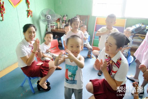 教师节来临之际,梨温高速鹰潭西收费站的工作人员到鹰潭市聋哑儿童康复中心与孩子们一起欢度庆祝教师节。