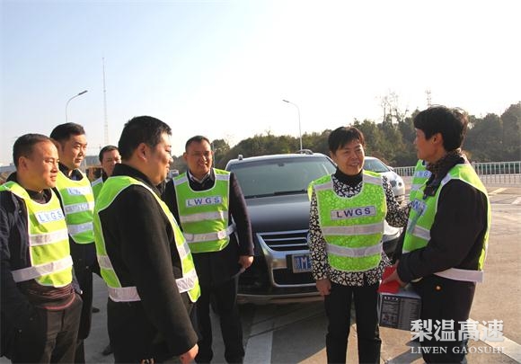 座谈会后,任东红、陈立新一行沿着梨温高速,自东往西,看望慰问了基层所站干部员工。在赣浙界梨园收费站,任东红听取了日前在该处召开的高速公路车辆专项整治总结会暨春运保畅会情况报告,实地查看了梨园站收费设施、保畅设备以及绿通验货查验程序,对梨温公司春运保畅方面取得的成绩再次进行了肯定。任东红指出,梨温公司赣浙界梨园收费站既是收费“大户”,又是集团春运保畅的一面形象大旗,要通过落实制度执行、加强队伍建设、搞好后勤保障、抓好安全运营等方式,继续当好典型示范、继续发扬先锋作用、努力再立新功。