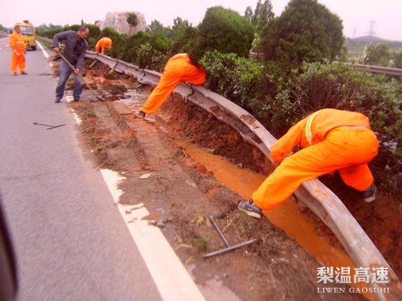 春运以来,梨温高速公路车流量急增,路损大幅上升,梨温交通设施维修队强化道路安全责任意识,举全队之力,积极为春运保驾护航,仅1月24日至28日短短5天时间,在确保作业安全前提下,修复梨温高速245KM零散路损护拦板1280米,有力地保障了梨温高速的安全畅通,为我省交通“东大门”良好形象增添了光彩。