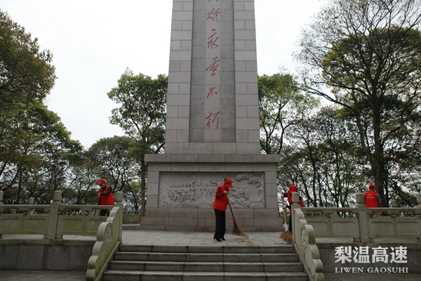 为弘扬民族传统文化和缅怀革命先烈,3月30日,梨温高速鹰潭管理处在贵溪市革命烈士纪念馆英雄碑下举行 “祭扫烈士陵园,缅怀革命先烈”主题活动,活动组织了党员、入党积极分子及员工祭扫烈士陵园。
