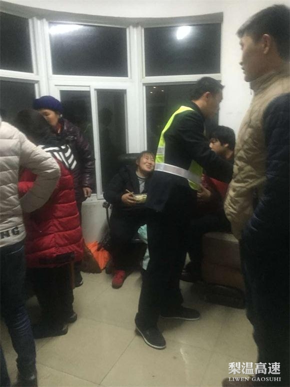 3月5日20时30分左右,小雨绵绵,梨温高速公路贵溪站匝道口走下来一队人,男女老少,还有三个抱在手上的幼儿,该站班长殷俊立即询问情况提供帮助。