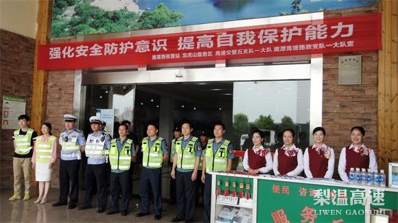 6月16日,安全生产宣传咨询日当天,梨温高速鹰潭西站联合多家单位,在龙虎山服务区开展“安全生产月”宣传咨询日活动。