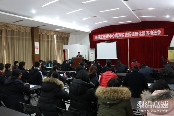 为快速推广执行南昌南管理中心服务标准,1月8日,梨温高速鹰潭收费所召开规范化服务推进会,该所各站站长、收费班长、收费员及机关人员参加学习。