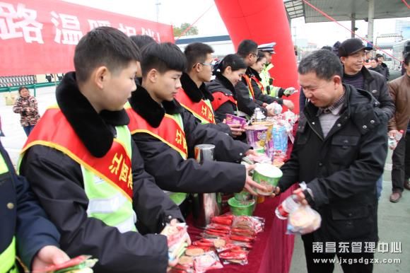 “师傅,您旅途辛苦了,欢迎您返乡过年!”随着第一声祝福的送出,标志着活动的开始。当天正值南方小年,志愿者在收费广场向广大旅客免费提供了开水、饼干、方便面等物品,送上了代表平安幸福的“平安结”,并向他们致以新春的问候,同时提醒过往司机朋友谨慎驾驶,祝他们旅途平安。