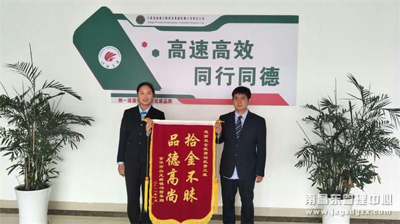 该失主连声道谢,并要发200元红包作为酬劳,三班人员婉言拒绝,该失主收到手机后,赠送一面锦旗上面写到“品德高尚,拾金不昧,”以感谢双金收费站收费三班全体人员。(陈思雅)