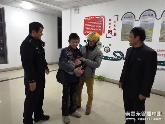 12月27日晚上7时许,南昌南管理中心冈上收费站当班班长段磊在车道巡查时发现,凛冽的寒风中一位十多岁的男孩坐在收费车道旁瑟瑟发抖,班长后迅速上前将自己的大衣披在男孩身上,并将他带至安全地带,一边询问情况一边通报值班站长。站长得知情况后,立即将男孩带至暖心服务室,为他送来热水、方便面以及御寒衣物。