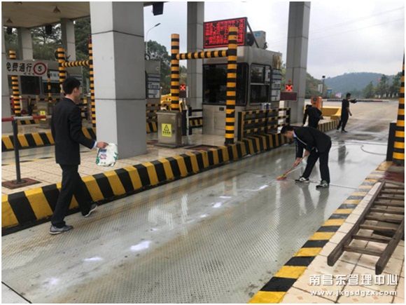 立冬过后,因赴庐山、温泉的旅游景点车辆激增,在南昌南管理中心星子北站收费广场附近积聚了大量的白色垃圾,为提升综合服务水平,该站于近日组织员工加强路域环境整治工作。