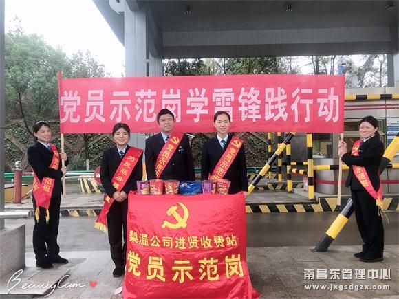 进贤站于2019年3月5日组织开展一次“学雷锋、传文明、扬新风”活动。一是岗前学雷锋,环保我先行。开展环境清洁志愿服务,打造整洁文明的高速收费站窗口。动手彻底清除卫生死角,清扫白色垃圾,打扫连接线上的卫生,给司乘一个干净整洁的行车环境。二是岗位学雷锋,服务暖人心。开展文明交通志愿服务,打造贴心暖心的高速收费站窗口。为了提供更好的便民服务,在收费站设立志愿服务台,为来往司乘提供便民服务。