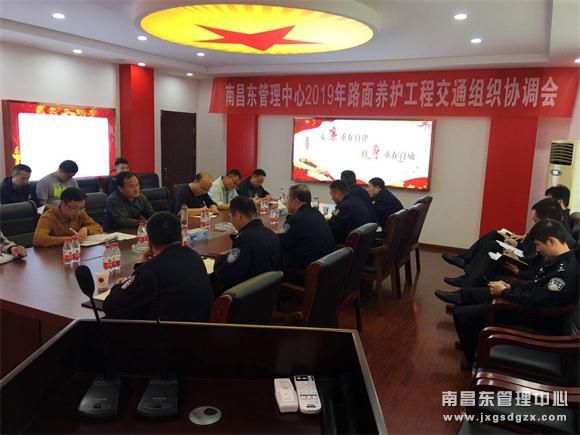4月17日下午,南昌南管理中心在杨梅岭养护站召开2019年路面养护工程交通组织协调会。中心副总经理邓琼华主持,高速交警五支队、沿线各交警大队主要负责人,各养护站负责人共20余人参加会议。
