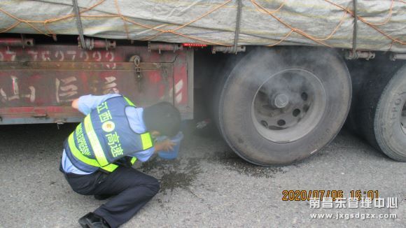 在发现未出现明火后,大家通过用自来水对故障车辆水箱、轮胎进行了浇淋降温,最终化险为夷。