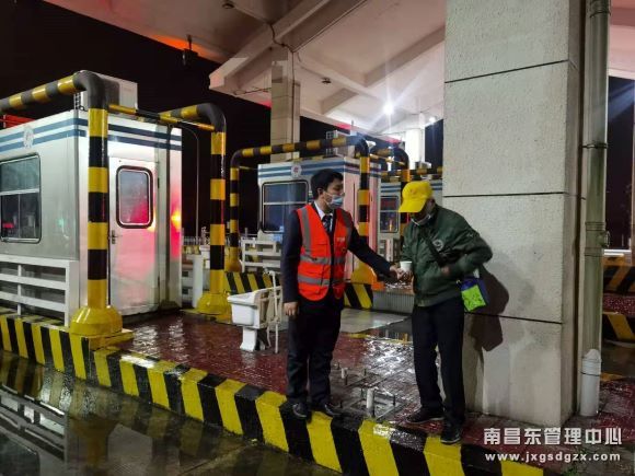 11月22日,正值24气节中的“小雪”,晚八时,江西省高速集团南昌南管理中心罗湖收费站安全员在巡查过程中,远见一位拖着行李箱的老人正冒着大雨沿着匝道朝高速出口走来。
