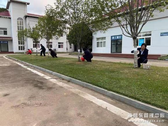 初冬来临,为增强树木今冬明春防寒抗病防虫能力,同时美化院区环境,南昌南管理中心进贤收费站组织在站员工为树木粉刷石硫合剂,绑胶带,有效帮助树木健康度过严冬。