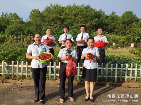 眼下正值辣椒丰收时节,7月29日傍晚时分,江西交投南昌南管理中心广丰收费站菜园里一片热闹的场面,原来是该站组织员工采摘辣椒。