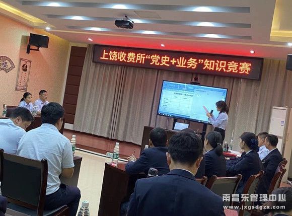 5月19日下午,南昌南管理中心上饶收费所以“学党史、悟思想、强业务、开新局”为主题,举办了一场意义非凡的“党史+业务”知识竞赛活动,旨在进一步推动党史学习教育深入开展,引导和激发广大员工立足本职岗位,使党史和收费业务相融共促,全面营造“党史融合,比学赶超”浓厚氛围。