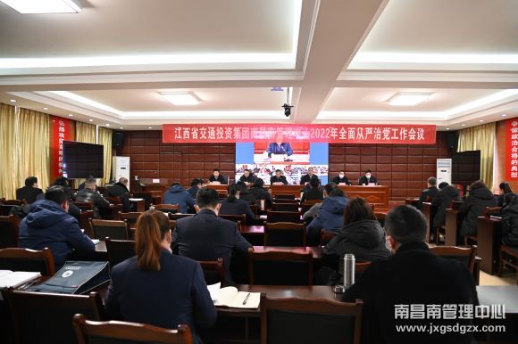 2月21日,南昌南管理中心召开2022年全面从严治党工作会议。中心总经理万良红同志主持会议,中心党委书记陈本华出席会议。中心班子各成员,机关各部门负责人、各单位党支部负责人,中心机关副站级以上干部及全体党员参加会议。