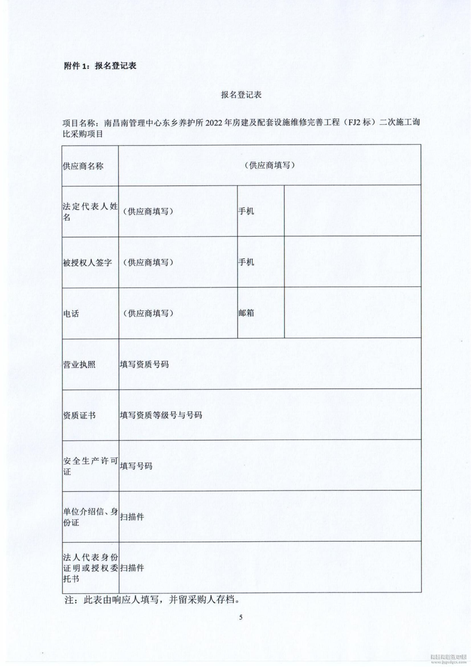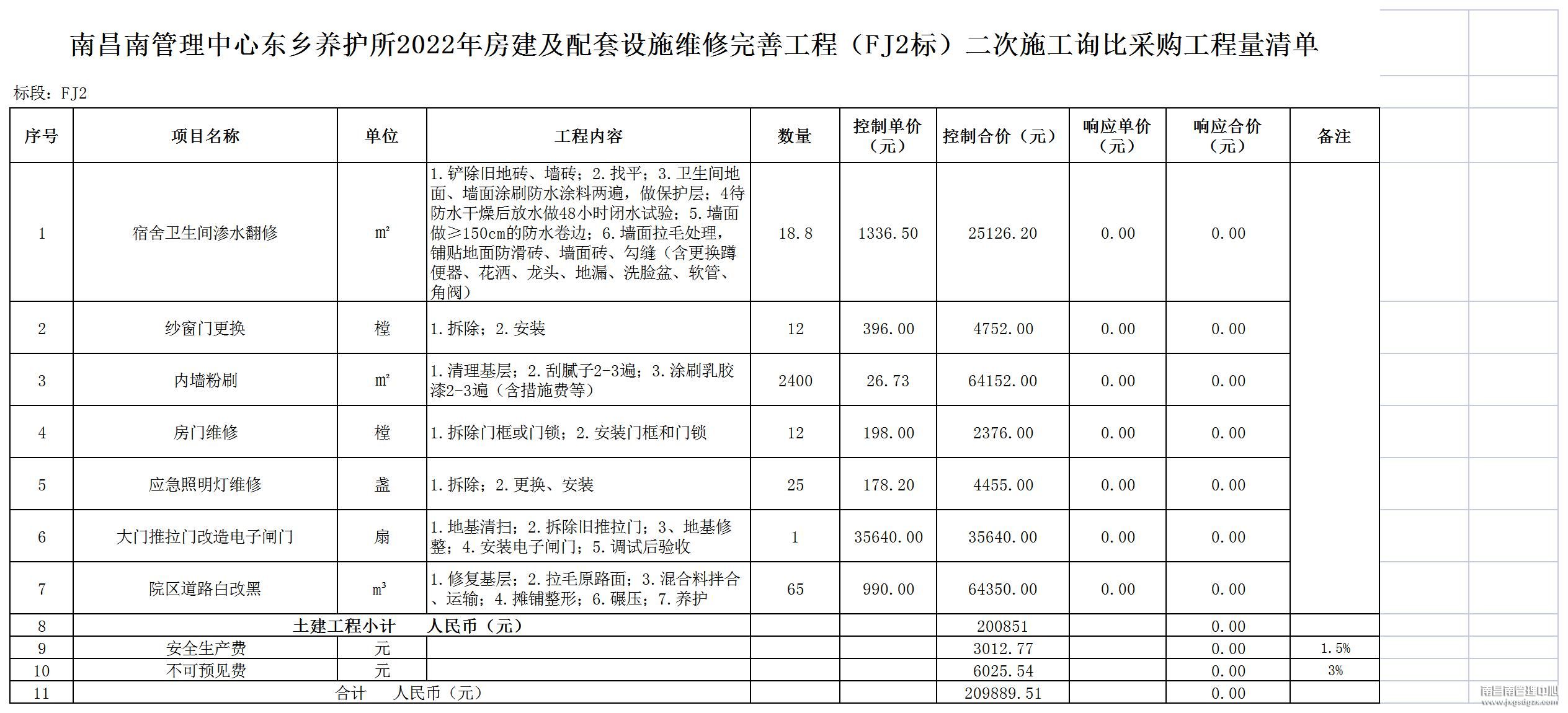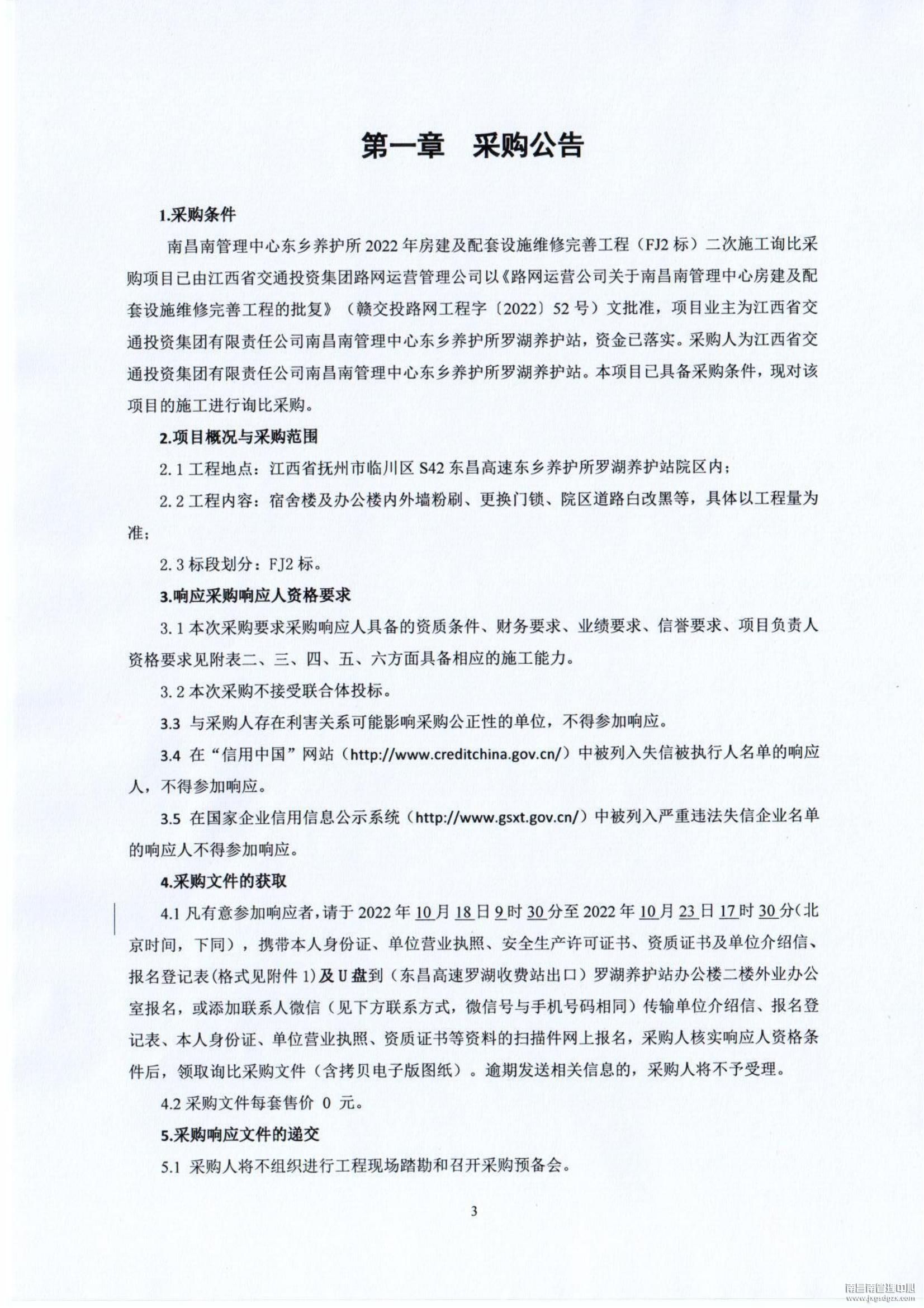 南昌南管理中心东乡养护所2022年房建及配套设施维修完善工程(FJ2标)第二次施工询比采购公告