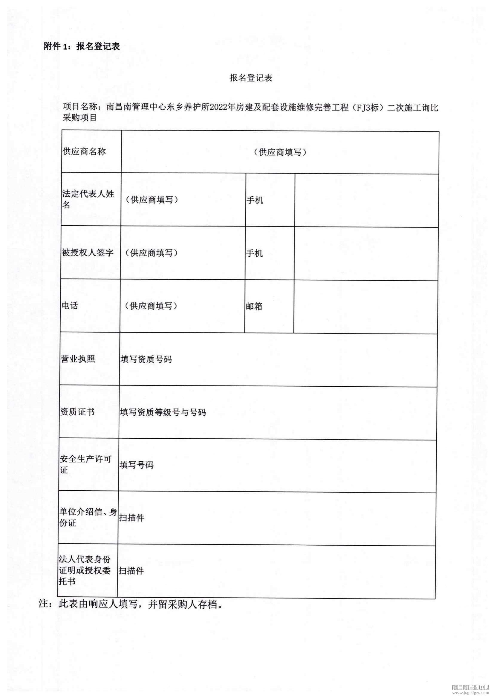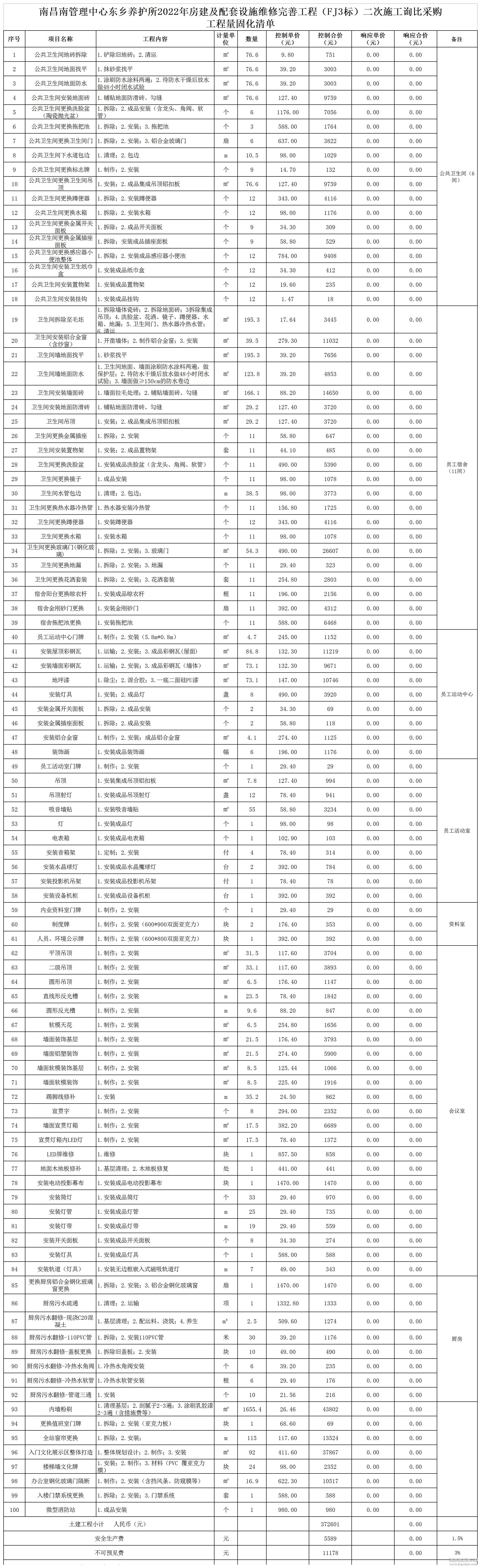 南昌南管理中心东乡养护所2022年房建及配套设施维修完善工程(FJ3标)二次施工询比采购公告及固化清单