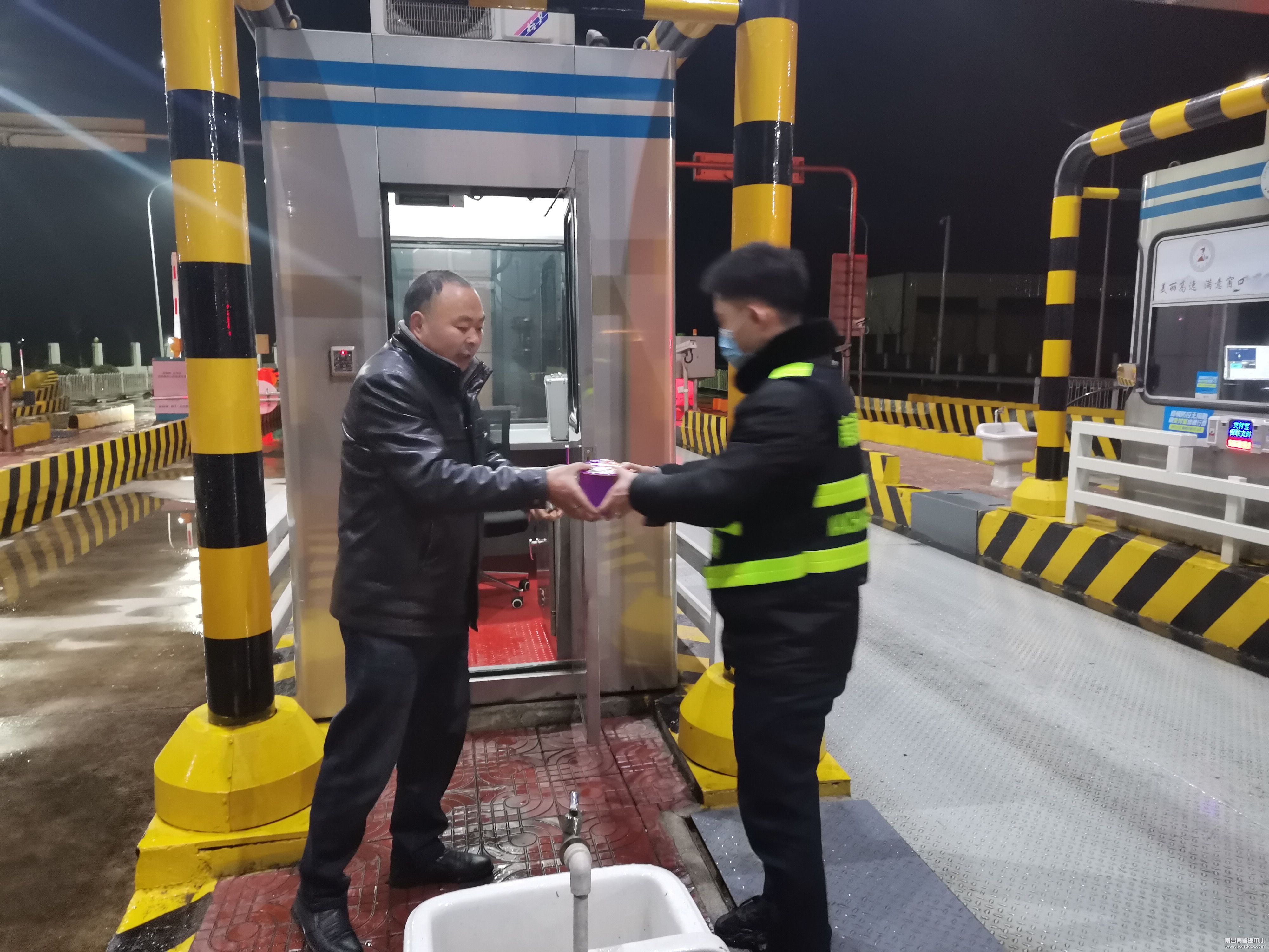 2月21日晚,清障车拖着一辆故障汽车驶下高速后在该站短暂停留,一位随车司机下车后待在路旁,冷得瑟瑟发抖。收费班长发现此情况,迅速上前询问。在通过一番简单的交谈后得知,原来车辆抛锚无法正常行驶,他跟着救援车辆一路下高速,现在又冷又饿。在知晓情况后,收费班子连忙将司机迎至休息间,为其准备好热水并泡好方便面作为临时晚餐。司机离开前表示,“心里暖暖的,感谢你们的帮助。”