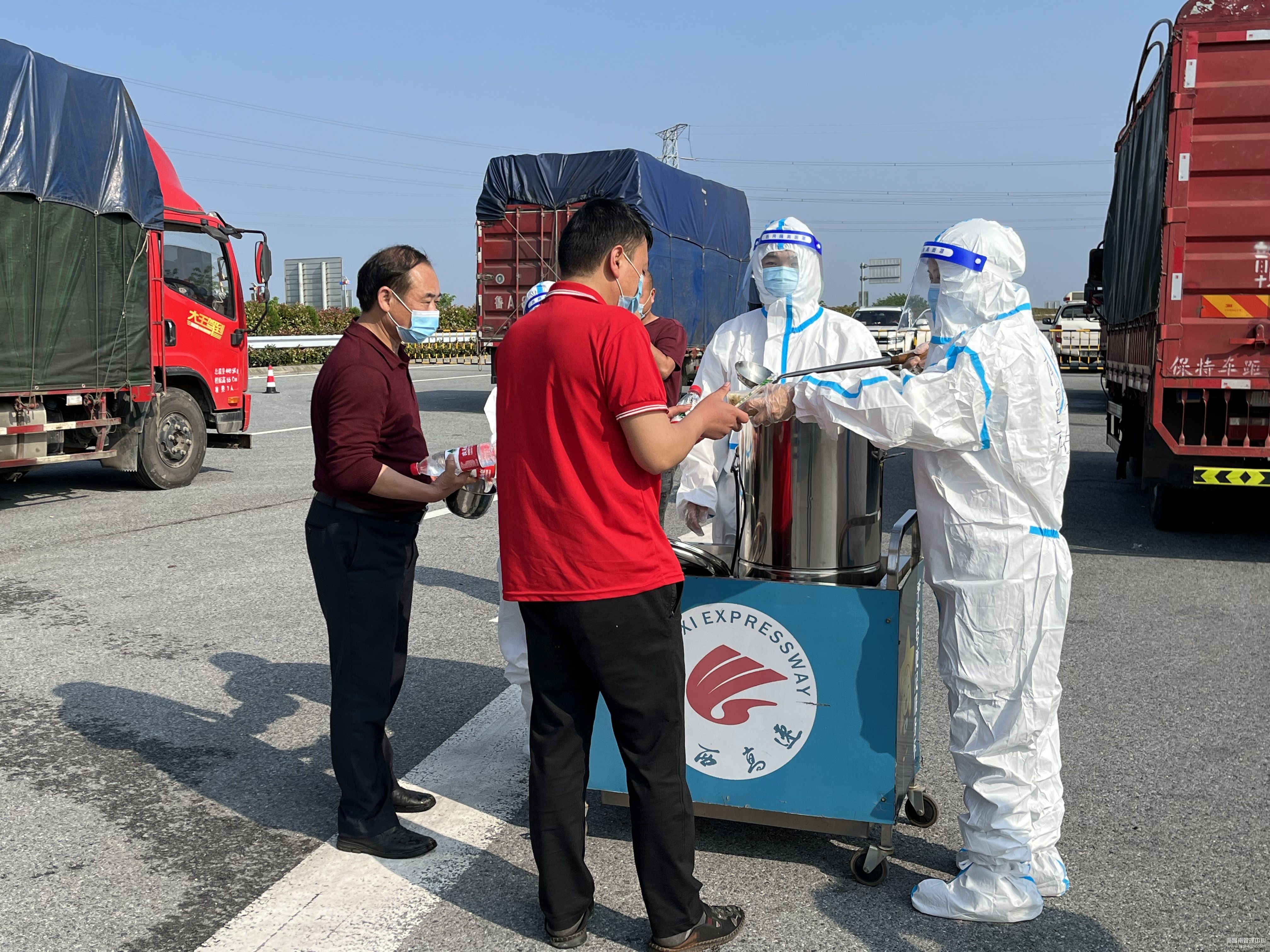 青年志愿者们身穿防护服,佩戴好口罩、防护面罩、手套,做好各项防护措施后,推着“平安号”便民服务车来到了收费广场,将一碗碗热面条、矿泉水送到了司乘人员手中,司乘人员脸上露出了笑容。张师傅说道,“真是太感谢你们了,没想到这种时候还能吃上一碗热面条,你们辛苦了!”疫情无情人有情,该站积极做好延伸服务,用实际行动让司乘感受到了疫情之下感受一份温暖。