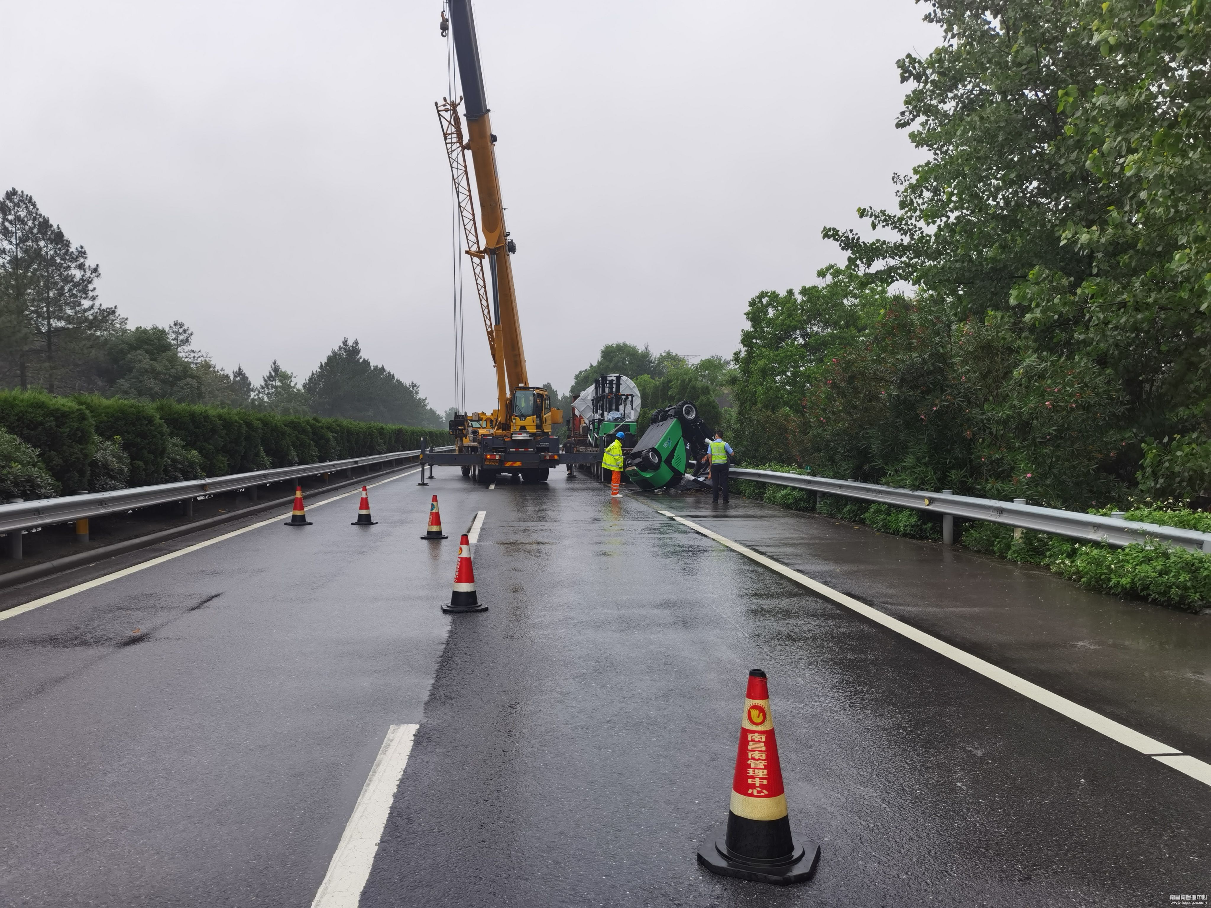 当天下午1点30分,鹰潭中队值班人员接到警报,在沪昆高速K599南昌方向发生一起大型货车追尾事故,导致所运叉车直接摔至路面,需要紧急救援。10分钟后,该中队救援人员抵达现场,优先做好现场的安全围蔽,并将车上所有人员引导至安全地带。本次事故发生在行车道,据驾驶员吴师傅说,由于前方车辆突发紧急刹车,导致他避让不及时,直接撞了上去,所运输的多辆叉车因为惯性全部往前冲,最后一辆叉车由于绳索断开,摔至应急车道,第一次遇到这种情况的他完全不知如何是好,所幸并未造成人员受伤。经查看,现场2辆货车均能正常行驶,随后,救援人员调度了一辆吊机前往现场援助,15点25分,吊机成功将叉车重新装载至吴师傅的半挂平板上。在救援人员的帮助下,吴师傅将叉车重新捆绑固定,并由救援人员在半挂车后方帮其预警,一同驶离了事故现场,部分人员留在现场清理残骸,16点05分,沪昆高速南昌方向正式恢复安全通行。