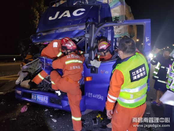 10月13日凌晨2点40分,在沪昆高速梨温路段上海方向K520+600公桩处发生了一起轻型货车追尾重型半挂车事故,其中后车驾驶员被卡驾驶室,后方车流量大,情况十分危急。南昌南车辆救援大队杨梅岭中队迅速出击,15分钟成功解救出驾驶员,快速恢复道路安全畅通。
