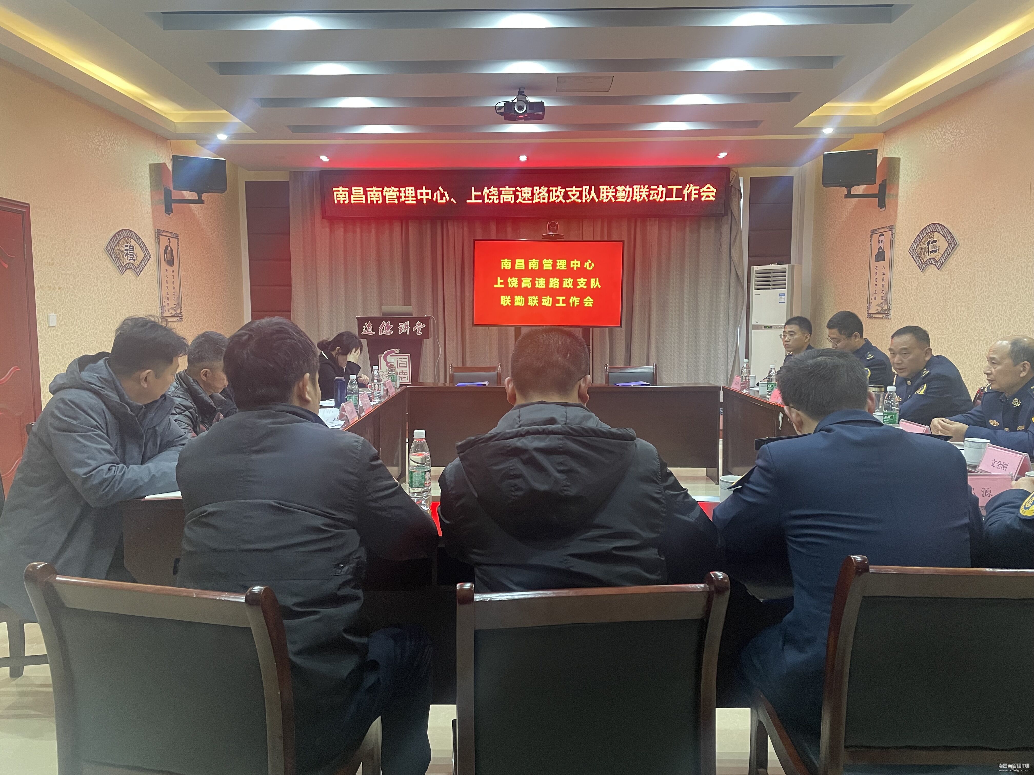 1月18日,南昌南管理中心联合高速路政支队在上饶收费所召开联勤联动工作会。