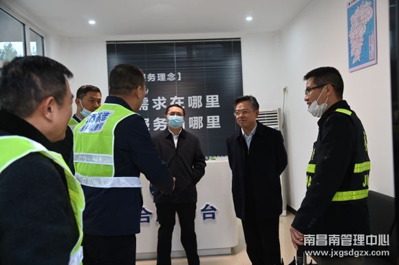 1月25日,集团党委书记、董事长王江军轻车简从深入南昌南管理中心督导春运及防疫工作,看望慰问干部职工,提前向干部职工拜年。集团党委委员、副总经理段卫党,路网运营公司总经理邹玉林,相关单位负责人陪同。