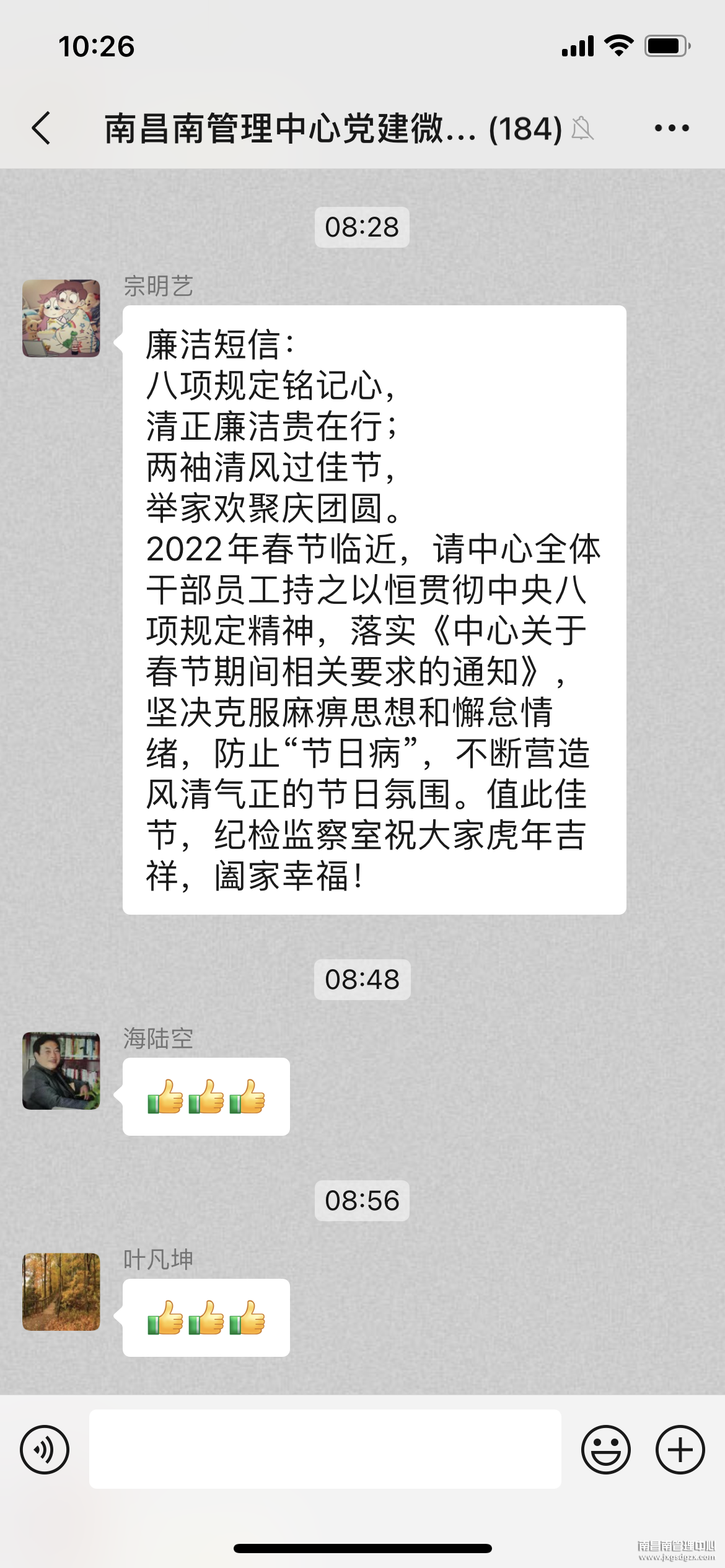 2022年春节将至,为严防“四风”问题反弹回潮,近日,南昌南管理中心纪委围绕重点岗位和关键人员,紧盯“关键节点”,坚持监督关口前移,通过开展节前廉政教育、发送廉洁短信的方式,进一步筑牢干部员工廉洁从业思想防线,营造风清气正、崇廉尚俭的节日氛围,敲响节日“廉洁警钟”。