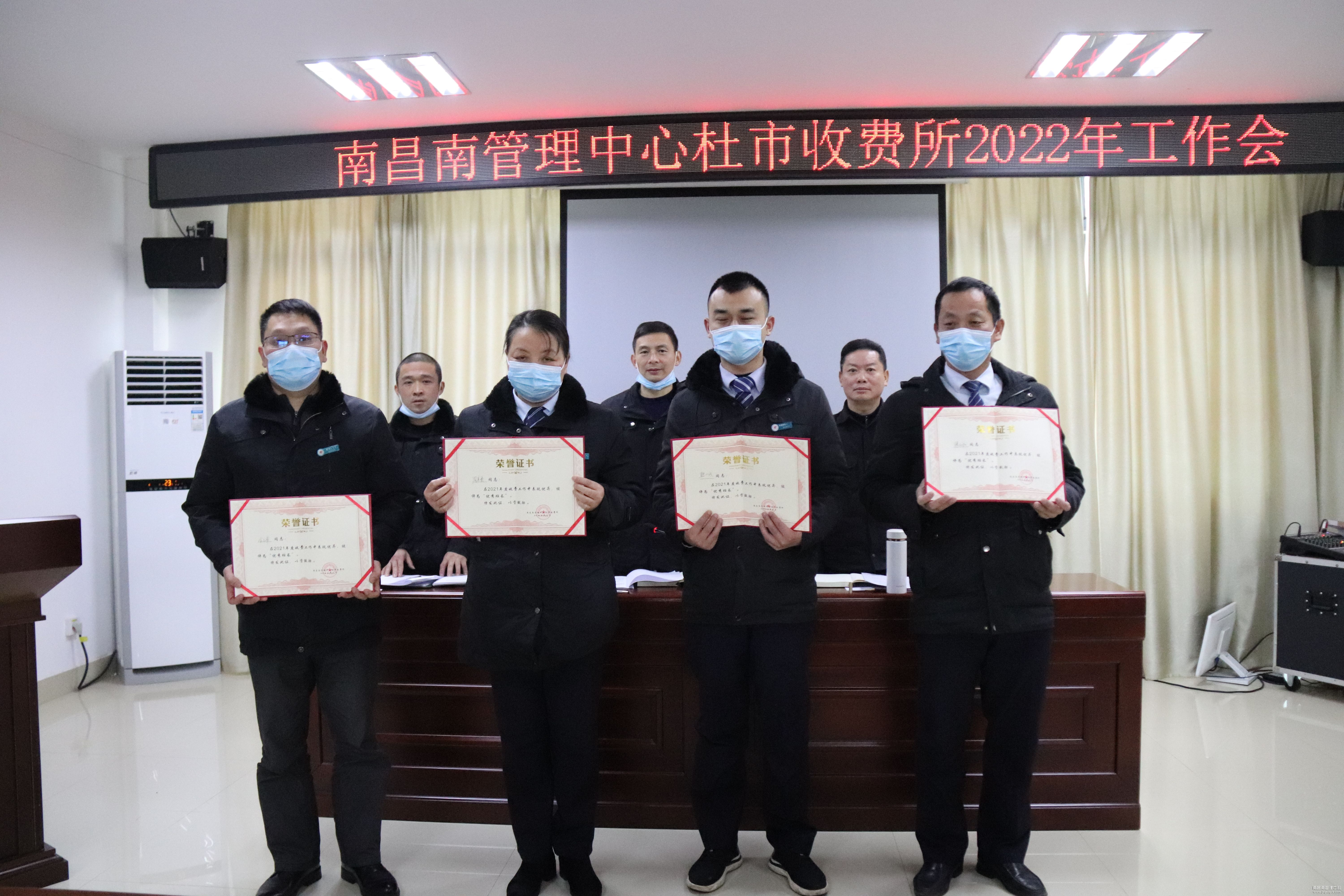 会上,所长叶凡坤宣读《杜市收费所关于表彰2021年度优秀收费班长和先进工作者的通报》,并做行政工作报告。报告指出:2021年,各站在创评星级收费站工作中,结合实际情况,打造了各具特色的班组之家、工作室或品牌文化;东乡西收费站成立小强工作室,利用淘汰设备,进行科研创新,获得了含伸缩门车牌识别系统在内的六项科研成果;罗湖收费站以宋朝政治家、改革家、文学家王安石为文化元素,打造了“荆公之家”收费站品牌;杜市收费站对“班组之家”进行升级改造,以刺绣文化为依托,打造了温馨有爱,积极上进的“第五班组”;桥东收费站集思广益,充分发挥动手能力,利用自动发卡机闲置配件,制作了用于入口混合车道提醒ETC车辆的语音播报器。随后,班子成员优秀个人代表和先进工作者奖项。