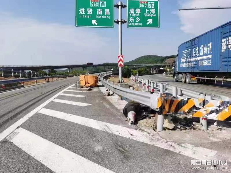 近日,南昌南管理中心罗湖养护站员工在日常巡查过程中发现辖段内东乡枢纽抚州往东乡方向匝道三角地带防撞垫、护栏端头、护拦板存在异常破损。经过仔细勘察后,认定此处曾发生一起交通肇事逃逸案件。