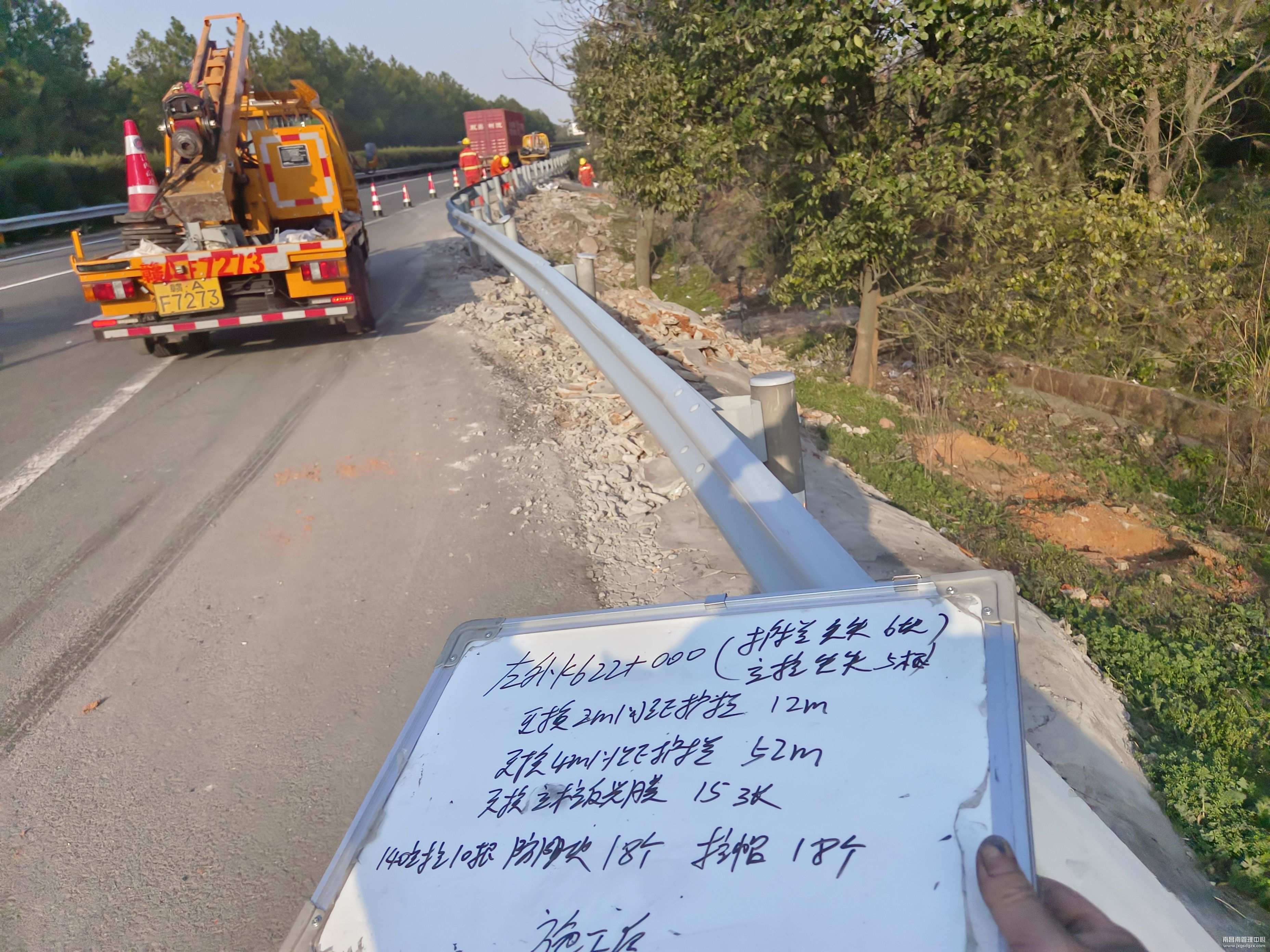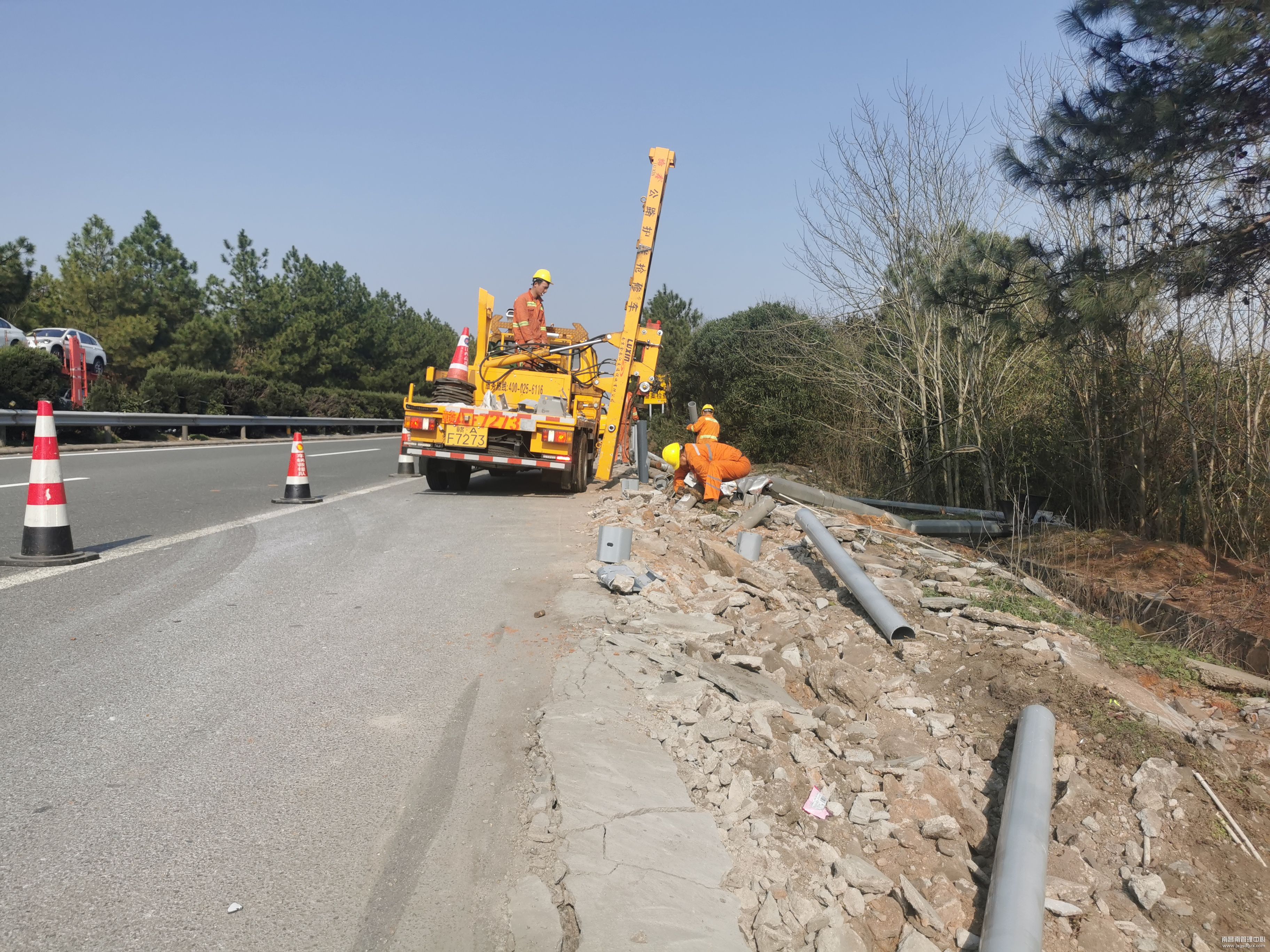 3月2日,由于交通事故导致沪昆高速梨温段鹰潭境内护栏及立柱被撞损坏严重,严重影响了高速公路正常通行,南昌南管理中心东乡养护所交安设施维修队工作人员及时处置,确保了群众出行安全。