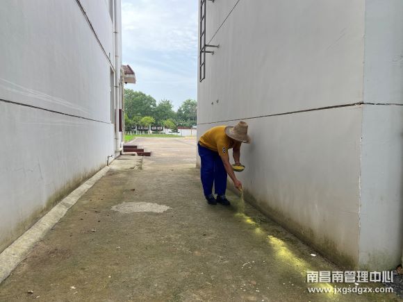 近日,南昌南中心进贤收费站组织在院区内全方位撒雄黄粉预防蛇虫出没。