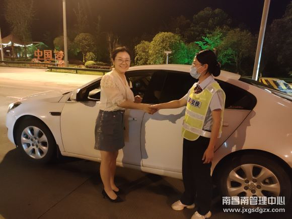 5月20日晚,在南昌南管理中心弋阳收费站,有一辆小车在ETC车道停滞不前,旁边的女士十分焦急在车旁踱步,看起来是遇到麻烦的样子,当班女班长在发现情况后,立即上前询问。