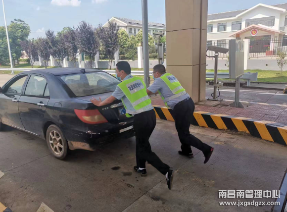 近日天气炎热,一辆小轿车在南昌南管理中心桥东收费站缴费离开时车子突发故障,无法启动,停滞在车道内,车主焦急万分,收费员见状迅速出动,帮助司机解决难题。