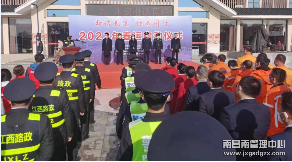 在启动仪式上,南昌南管理中心、高速交警、高速路政、江西畅行公司“一路四方”代表分别作表态发言,表示要增强责任意识、担当意识、使命意识,履行职责,服从安排,围绕安全保畅要求,以饱满的热情、昂扬的斗志投入到春运工作中去,为民服务,积极奉献,热情服务好广大人民群众,坚决守护好广大人民群众的平安回家路,让来往群众在平安、有序、温馨的春运氛围中欢乐出行。