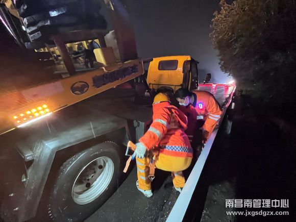 当晚20点50分,在上海方向K522公桩处一辆112型货车发生爆胎,车辆救援大队立即组织人员出发,“抗冰雪保畅”党员先锋队第一时间抵达现场。