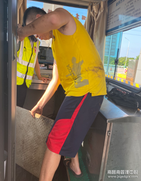 8月23日,南昌南管理中心丽村维护站在接到杜市收费站车道故障的电话后,火速赶往现场抢修。