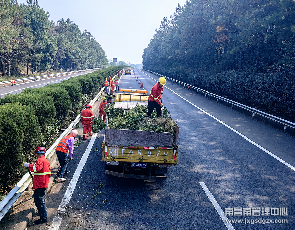 近期,南昌南管理中心邓家养护站辖段高速公路中分带绿植由于生长过于茂盛,枝叶繁复,不仅遮挡了驾驶员的视线,对通行安全也造成了潜在的威胁。
