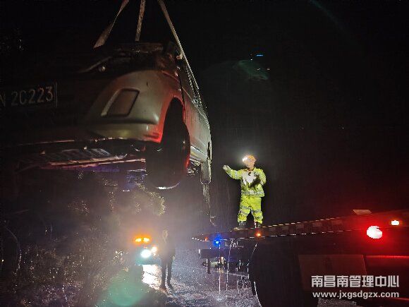 2月22日凌晨1时40许,南昌南管理中心南昌南车辆救援大队罗湖中队接交警通知,在东昌高速东乡方向K65公桩处,有一辆小面包车冲出主线陷在边坡下,车上7人,1人轻伤,车辆已无法行驶。