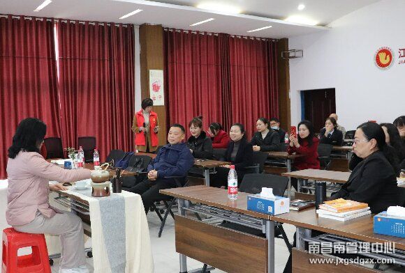 此次邀请到鹰潭市“道行德兴”志愿者协会前来授课。在茶艺老师的精湛展示下,拉开了此次培训的序幕,看着茶艺老师熟练优美的动作和专注的表情,深深的吸引着每个人,当大家亲自完成烫杯、拨茶、高冲、盖沫、奉茶等一系列动作时,体会到的不仅仅是欢乐的掌声,还有茶艺所带来的清纯、幽雅以及朴质的气质。