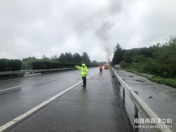 6月26日上午,沪昆高速公路K681+400下行路段,一辆车辆突然起火。这一险情被东乡养护所邓家养护站的养护巡查人员及时发现并妥善处理。