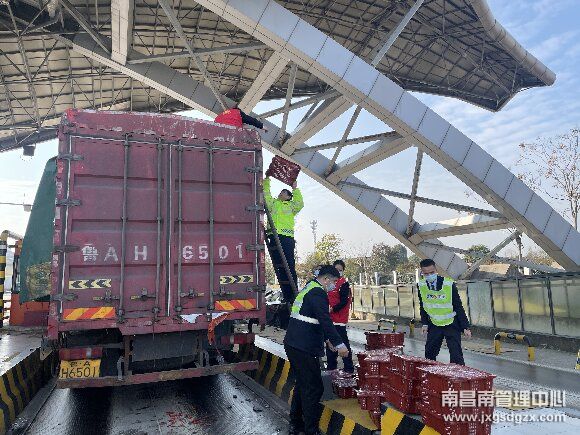 1月28日上午,一辆装载辣椒的绿通车在南昌南管理中心上饶经开区收费站下高速时,由于装车时货物未装稳,导致在打开货车后仓门准备查验时,所装置的货物散落一地。正当货车司机看着满地货物一筹莫展之际,该站值班站长发现了情况,并立即组织当班保畅人员上前帮助。