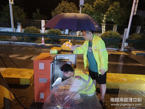 8月14日,受雷暴天气影响,南昌南管理中心玉山收费站入口001、002车道地磅突发故障,造成入口车辆积压,收费站工作人员立即采取行动,保障车道安全通行。