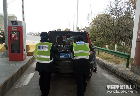 2月25日中午,在南昌南管理中心弋阳收费站的出口车道上,一辆小车在顺利完成过路费缴纳后,车辆却突然无法启动,司机焦急万分。
