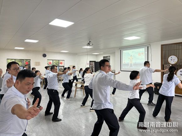 每天清晨,上饶收费所的活动场地总是呈现出一片生机勃勃的景象。员工们整齐列队,跟随现场指导和视频教程,认真学习八段锦的每一个动作。从“两手托天理三焦”的舒展大方,到“左右开弓似射雕”的刚柔并济,再到“调理脾胃须单举”的灵动洒脱,大家伴随着舒缓的音乐,全神贯注地体会着传统养生功法的独特魅力。在一招一式的练习中,工作压力得以有效释放,身心疲惫逐渐消散。