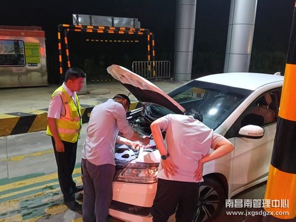 5月30日,一辆小轿车在南昌南管理中心进贤收费站出口缴费时突发故障,正在司机焦急万分不知所措时,幸得收费站工作人员及时伸出援手助其摆脱困境。