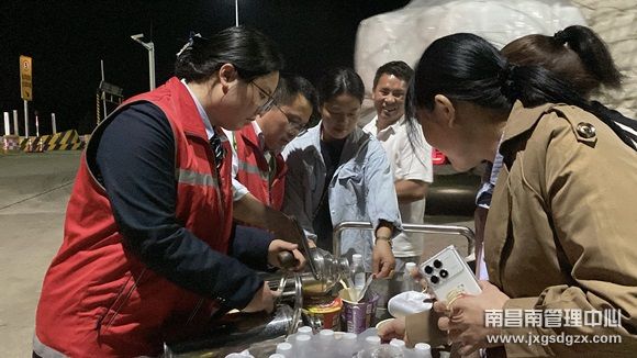 了解情况后,班长黄建涛及时将这一情况报告值班站长,及时在大巴车后方摆好安全锥,并帮忙联系了维修人员,耐心提醒司乘客注意安全,在得知他们还未吃晚饭时,工作人员及时组织“邓子龙”志愿者服务队,热心为司乘免费提供热水、方便面、矿泉水等食物给滞留乘客充饥,同时还提供手机充电器及免费Wi-Fi等便民服务,安抚缓解司乘焦虑的心情。
